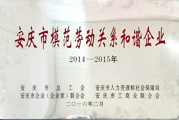 安慶市模范勞動(dòng)關(guān)系和諧企業(yè)